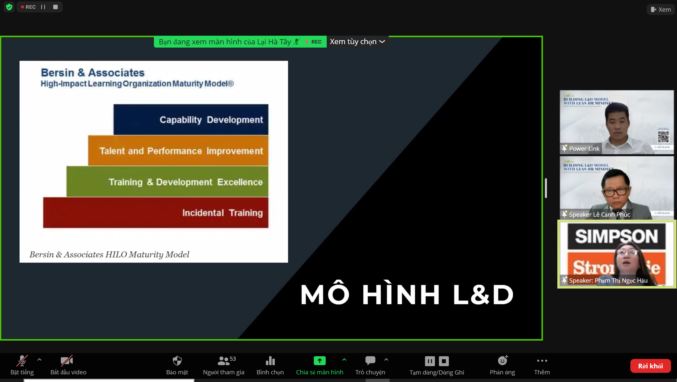 Chủ nhật vừa qua ( ngày 24/07), Link Power vừa tổ chức thành công hội thảo online với chủ đề : Building L&D Model with Lean HR mindset. Buổi chia sẻ đã thu hút gần 100 anh chị làm nhân sự, đào tạo và phát triển tham dự để cùng trao đổi phân tích về hiện trạng nổi đau, phương pháp đánh giá đào tạo và cách thức triển khai xây dựng mô hình L&D kết hợp cùng tư duy quản lý nhân sự tinh gọn.