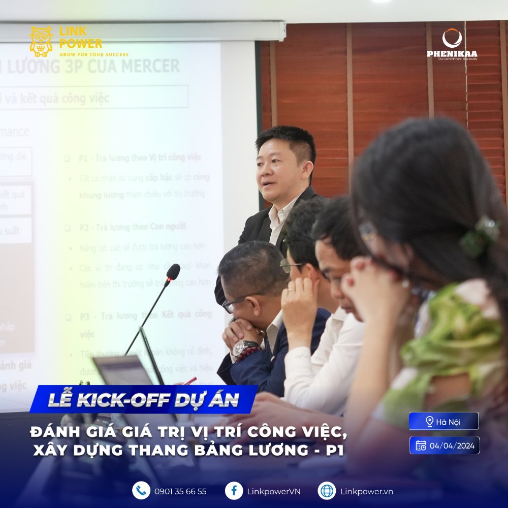 Với định hướng của Tập đoàn Phenikaa là xác định Hệ thống, Con người và Công nghệ là yếu tố thúc đẩy tạo lợi thế cạnh tranh và phát triển bền vững. Ngày 04/04/2024, các chuyên gia tại Link Power đã hiện diện tại Thủ đô Hà Nội, chính thức triển khai dự án “Xây dựng hệ thống P1 trong cấu trúc lương theo 3Ps” đến với Tập đoàn Phenikaa, đóng góp vào việc xây dựng hệ thống cấp bậc, từng bước hướng đến các định hướng đã đề ra.