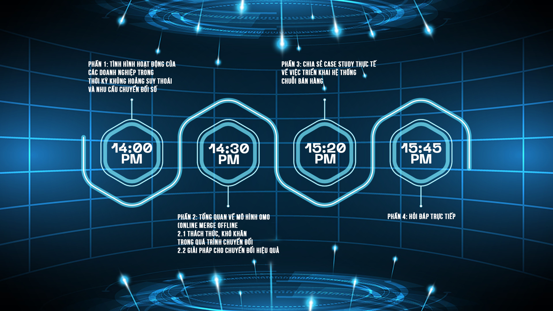 Agenda của chương trình "Thực trạng và giải pháp cho doanh nghiệp khi chuyển đổi mô hình OMO"